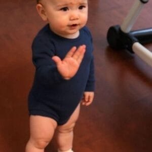 The little boy does not allow any of the family members to speak, and he excitedly tells his father something