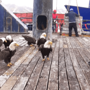 Jessie Peek, a fisherman in Alaska, took things a step further when it came to selecting the animal he wanted to feed. He noticed a group of bald eagles, an…