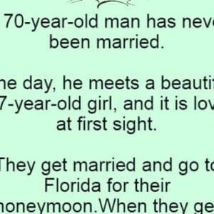 A 70-year-old man has never been married. One day, he meets a beautiful 17-year-old girl, and it is love at first sight. They get married and go to Florida for…