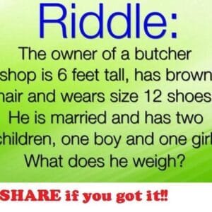 THE QUESTION The riddle asks, “What does he weigh?” The key to solving this riddle is focusing on the fact that the person is a butcher. Therefore, the answer is…