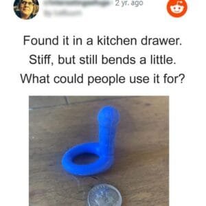“Found this in a kitchen drawer. It’s stiff but still bends a little. What is this thing?” Answer: It’s a connector to a measuring cup set.