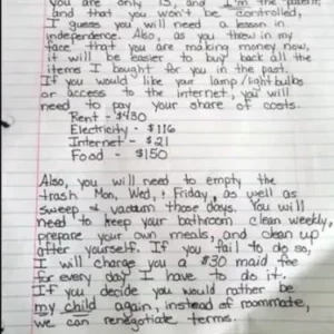In Temple, Arizona, Heidi Johnson took a creative approach to address her 13-year-old son Aaron’s disrespect and negligence toward homework. She left a detailed note on his door after he…
