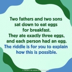 They were 3 generations, grandfather, father, and son/grandson. Grandfather, Father, and Son = 2 Fathers & 2 Sons, but only 3 people @ 1 egg each means 3 eggs total….